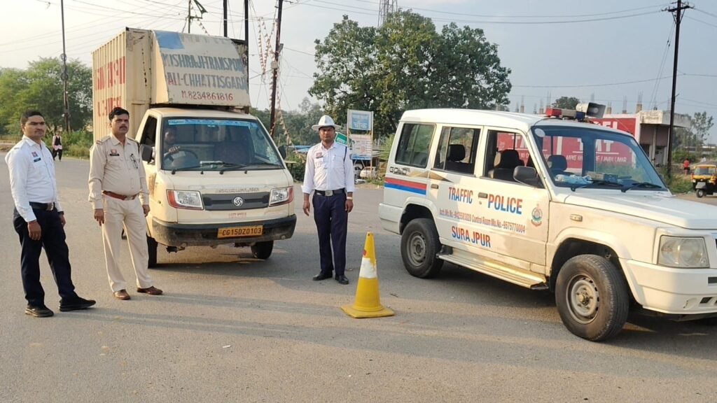 सूरजपुर पुलिस ने वाहन चालकों से अपील किया है कि यातायात नियमों का पालन करें, शराब का सेवन कर वाहन न चलाए, वाहन चलाते समय मोबाईल का उपयोग न करें, अपने नाबालिक बच्चों को कभी भी वाहन न दे जब-तक वे 18 वर्ष के न हो जाये व परिवहन विभाग से वाहन चलाने का वैध लायसेंस न बना ले। दोपहिया में तीन सवारी न चले, बिना हेलमेट बाईक न चलाए, बिना सीट बेल्ट चार पहिया वाहन न चलाए, दुर्घटना से देर भली-जीवन अनमोल है। यातायात नियमों के प्रति लोगों को जागरूक करने व चेकिंग अभियान में जिले के सभी थाना-चौकी व यातायात पुलिस मजबूती के साथ लगी हुई है।