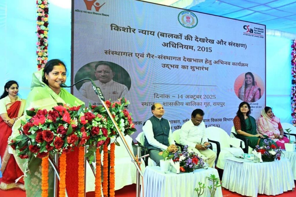 रायपुर, /महिला एवं बाल विकास मंत्री श्रीमती लक्ष्मी राजवाड़े के मुख्य आतिथ्य में आज रायपुर के खम्हारडीह स्थित शासकीय बालिका गृह में “उद्भव” नामक अभिनव कार्यक्रम का शुभारंभ हुआ। यह कार्यक्रम महिला एवं बाल विकास विभाग, छत्तीसगढ़ राज्य बाल संरक्षण समिति द्वारा किशोर न्याय (बालकों की देखरेख एवं संरक्षण) अधिनियम 2015 यथा संशोधित 2021 के अंतर्गत संस्थागत एवं गैर संस्थागत देखरेख के प्रभावी क्रियान्वयन हेतु आयोजित किया गया।