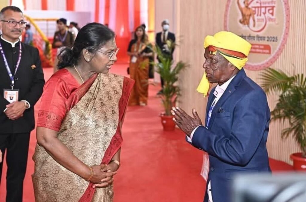 जनजातीय गौरव दिवस के राज्य स्तरीय कार्यक्रम में गुरुवार को एक ऐतिहासिक और भावुक क्षण देखने को मिला, जब राष्ट्रपति श्रीमती द्रौपदी मुर्मु ने पण्डो जनजाति के वरिष्ठ सदस्य बसन्त पण्डो से विशेष मुलाकात की। कार्यक्रम स्थल पर जब बसन्त पण्डो राष्ट्रपति मंच के समीप पहुँचे, तो राष्ट्रपति मुर्मु ने अत्यंत आत्मीयता के साथ उनका कुशल-क्षेम जाना, उन्हें पास बुलाया और स्नेहपूर्वक शॉल ओढ़ाकर सम्मानित किया।