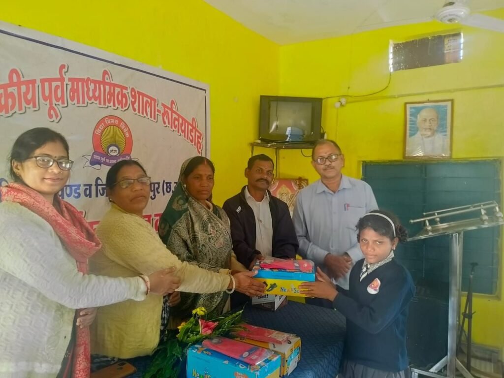 बिश्रामपुर– क्षेत्र के प्रथम बस्तामुक्त विद्यालय शासकीय पूर्व माध्यमिक शाला रुनियाडीह में संस्था के अध्यनरत जरूरतमंद बीपीएल परिवार के दो छात्र दो छात्राओं को काला जूता व लाल मोजा का वितरण किया गया। संस्था प्रमुख सीमांचल त्रिपाठी द्वारा बताया गया कि जन भागीदारी, पब्लिक पार्टनरशिप सुनिश्चित करने, विद्यालय हमारा है और विद्यालय में पढ़ने वाले बच्चों के प्रति हमारी जवाबदेही तय होनी चाहिए, के तहत बाबूलाल यादव अध्यक्ष एसएमडीसी हायर सेकेंडरी स्कूल रामनगर से पालक-शिक्षक- बालक सम्मेलन रामनगर में मांग की गई, जिसे आपने तत्काल संस्था प्रमुख को उपलब्ध कराया। बाबूलाल यादव से प्राप्त जूता-मोजा का वितरण आपकी अनुपस्थिति में क्षेत्र के जनपद सदस्य श्रीमती सुंदरमनी राजवाड़े के हाथों मनीता राजवाड़े आत्मजा शिव प्रसाद राजवाड़े, प्रतिमा विश्वकर्मा आत्मजा स्व. प्रेम विश्वकर्मा, कुलदीप सिंह आत्मज सुरजीत सिंह तथा धनेश्वर सारथी आत्मज संजय सारथी को प्रदान किया गया। जनपद सदस्य श्रीमती सुंदरमनी राजवाड़े एवं बाबूलाल राजवाड़े द्वारा शत-प्रतिशत उपस्थित बच्चों को पेन-कॉपी प्रदान किया गया। इस दौरान पूर्व जनपद सदस्य बाबूलाल राजवाड़े, संस्था की शिक्षिका श्रीमती एम. टोप्पो, पूनम गुप्ता, मध्याह्न भोजन सहायिका श्रीमती सुमित्रा राजवाड़े तथा नान दईया उपस्थित रहे। जूता- मोजा तथा पेन-कॉपी पाकर जरूरतमंद तथा गरीब बीपीएल परिवार के बच्चों सहित अन्य समस्त बच्चों में खुशी देखने को मिली। संस्था प्रमुख सहित समस्त शिक्षकों एवं बच्चों ने बाबूलाल यादव, सुंदरमनी राजवाड़े तथा बाबूलाल राजवाड़े का हार्दिक आभार व्यक्त किया।