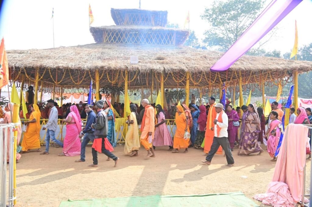 सूरजपुर।प्रेमनगर विधायक भूलन सिंह मरावी का गृहग्राम पटना इन दिनों भक्ति, श्रद्धा और आध्यात्मिक उल्लास का जीवंत केंद्र बन गया है। ग्राम पंचायत पटना के पावन गंवहा सरना प्रांगण में 19 जनवरी से आयोजित श्री श्री 11 कुण्डीय विष्णु महायज्ञ एवं श्रीमद् भागवत कथा ज्ञान यज्ञ ने पूरे गांव ही नहीं, आसपास के अंचलों को भी भक्ति रस से सराबोर कर दिया है। यज्ञ वेदी से उठती अग्नि की लौ, मंत्रोच्चार की गूंज और श्रद्धालुओं की आस्था-हर दृश्य मन को भीतर तक छू रहा है।महायज्ञ में प्रतिदिन तड़के से ही श्रद्धालुओं का सैलाब उमड़ रहा है। वेदी पर आहुतियां समर्पित करते भक्त, हाथों में फूल-अक्षत लिए स्त्री-पुरुष और बच्चों के मुख पर दिखती श्रद्धा-मानो पूरा गांव एक साथ ईश्वर भक्ति में लीन हो गया हो।