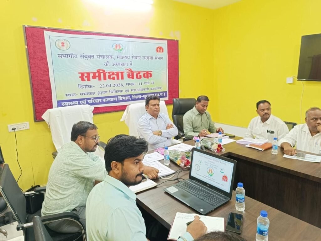 राजेंद्र पसवान सूरजपुर, /सूरजपुर जिले में स्वास्थ्य सेवाओं को और अधिक सुदृढ़ एवं प्रभावी बनाने के उद्देश्य से आज संभागीय संयुक्त संचालक, संचालनालय स्वास्थ्य सेवाएं, सरगुजा संभाग डॉ. अनिल कुमार शुक्ला की अध्यक्षता में मुख्य चिकित्सा एवं स्वास्थ्य अधिकारी सूरजपुर के सभा कक्ष में मासिक समीक्षा बैठक आयोजित की गई। बैठक में विभिन्न राष्ट्रीय कार्यक्रमों एवं जनकल्याणकारी योजनाओं की विस्तृत समीक्षा करते हुए जमीनी स्तर पर बेहतर क्रियान्वयन के निर्देश दिए गए।