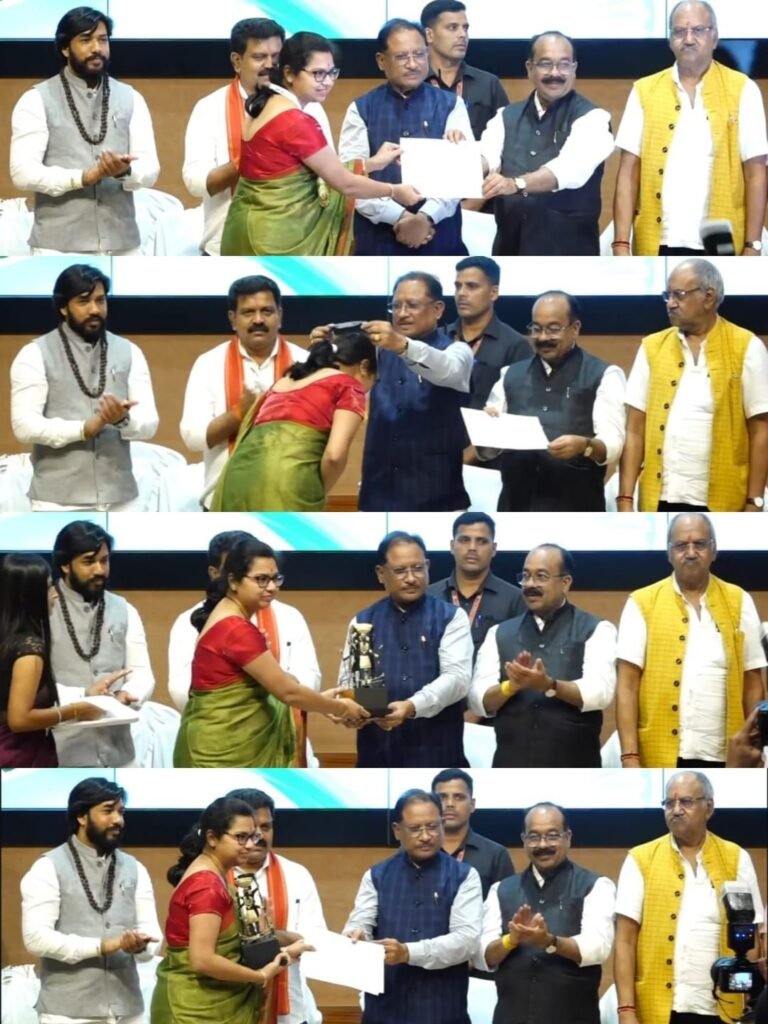 इस गरिमामयी समारोह में जिला सूरजपुर को उत्कृष्ट सेवा वितरण एवं संपूर्णता अभियान के सभी मानकों में लक्ष्य प्राप्ति हेतु गोल्ड मेडल एवं प्रशस्ति पत्र प्रदान कर सम्मानित किया गया। जिला पंचायत सीईओ श्रीमती कमलेश नंदिनी सूरजपुर ने यह सम्मान मुख्यमंत्री श्री विष्णु साय के कर-कमलों से ग्रहण किया।