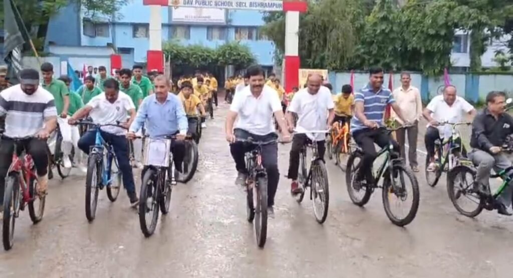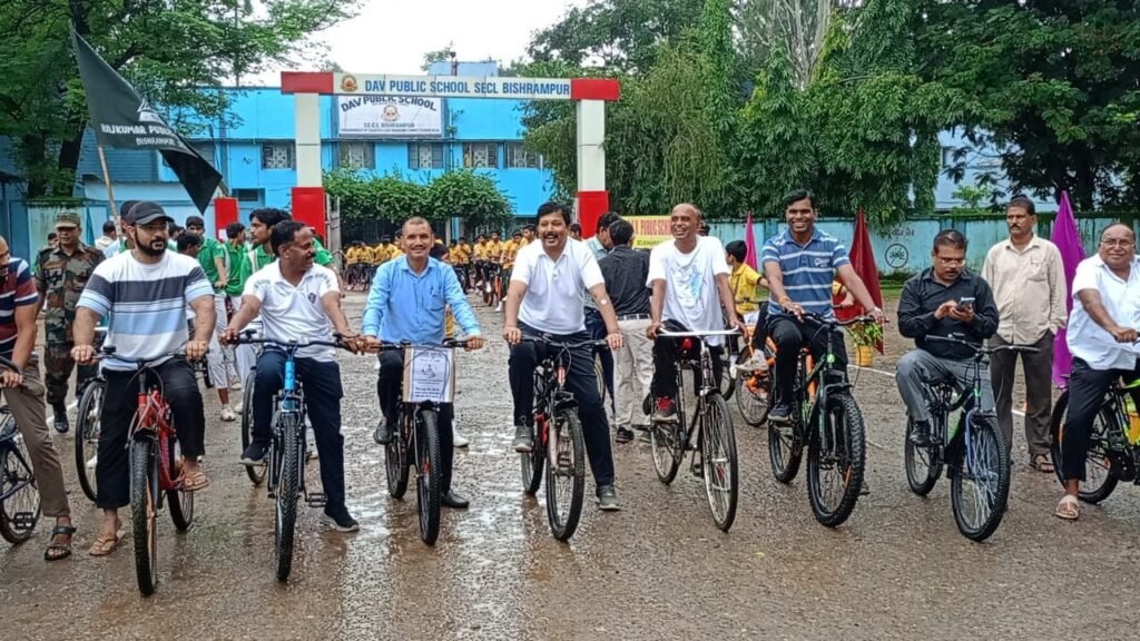 शनिवार, 02 अगस्त 2025 को डीआईजी व एसएसपी सूरजपुर श्री प्रशांत कुमार ठाकुर ने नशे के विरूद्ध जनजागरूकता अभियान नवजीवन के तहत विश्रामपुर स्थित डीएव्ही पब्लिक स्कूल एवं राजकुमार स्कूल के छात्रों, शिक्षकों एवं नागरिकों के साथ नगर में सायकल रैली निकालकर आमजन को नशे के प्रति जागरुक किया। रैली में नशे के दुष्प्रभावों के प्रति जागरूक करने वाले नारे बोलते हुए साइकिल रैली निकाल कर सभी को नशे से दूर रहने का प्रभावी संदेश दिया है।