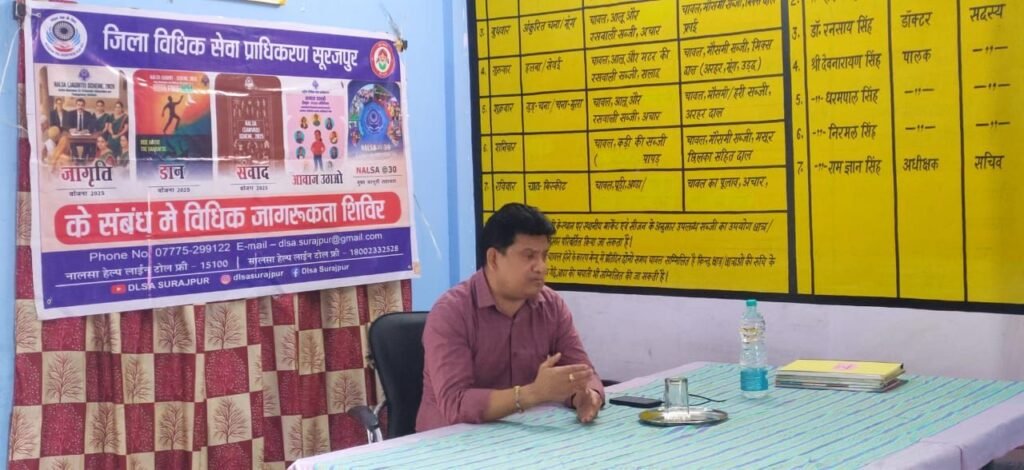 सूरजपुर: माननीय श्रीमती विनीता वार्नर, प्रधान जिला एवं सत्र न्यायाधीश/अध्यक्ष जिला विधिक सेवा प्राधिकरण सूरजपुर के मार्गदर्शन में और माननीय श्री आनंद प्रकाश वारियाल, जिला एवं अपर सत्र न्यायाधीश फास्ट ट्रैक विशेष न्यायालय के निर्देशन में जिला विधिक सेवा प्राधिकरण सूरजपुर द्वारा प्री-मैट्रिक बालक छात्रावास में कानूनी जागरूकता शिविर का आयोजन किया गया।
