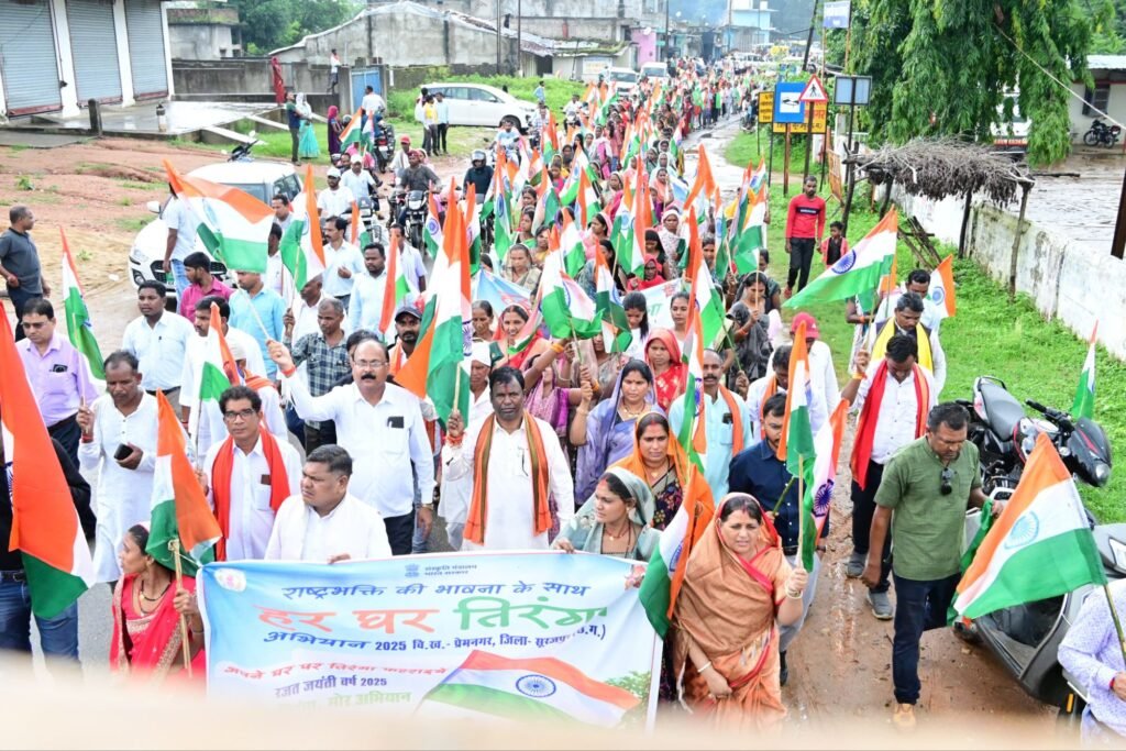 नीरज सिंह / प्रेमनगर विकास खंड में तिरंगा यात्रा क्षेत्रीय भूलन सिंह मरावी शामिल हुवे प्रेमनगर विकास खंड के समस्त ग्राम पंचायत के आम जन शामिल हुवे आपको बतादें की जबसे तिरंगा यात्रा गांव गांव में निकाला जा रहा है और हर घर तिरंगा घर घर तिरंगा के तहत हर घर में तिरंगा लगाया जाता है तभी से आम जन में राष्ट्रीयता का पहचान बन रहा है लोगों में तिरंगा झंडा के प्रति लोगों में जागरूकता आ रहा है आमजनों को तिरंगा यात्रा निकालने से लोगों में देशभक्ति का भाव जागरण हुआ है तिरंगा यात्रा कार्यक्रम में भाजपा जिलाध्यक्ष मुरलीमनोहर सोनी जिला मंत्री संदीप अग्रवाल शशिकांत गर्ग भाजपा प्रदेश कार्यसमिति सदस्य बीरेंद्र जायसवाल जिला पंचायत सदस्य नयन सिरदार पूर्व जिला पंचायत सदस्य अजय श्याम जगमोहन सिंह मंडल महिला मोर्चा प्रदेशकार्यसमिति सदस्य पूर्णा जायसवाल अध्यक्ष मिथिला बंजारा जनपद अध्यक्ष फुलेश सिरदार उपाध्यक्ष पूनिया राजवाड़े कंचन श्याम सुमित दास रामनारायण तंवर किरण साहू शांति कुजूर युवा मोर्चा मंडल महामंत्री प्रदीप साहू सुभाष साहू अखिलेश साहू विवेक पांडेय अनुविभागीय अधिकारी तहसील दार मुख्य कार्यपालन अधिकारी विकास खंड शिक्षा अधिकारी कार्यक्रम अधिकारी सहित समस्त विभाग के अधिकारी कर्मचारी उपस्थित रहे।