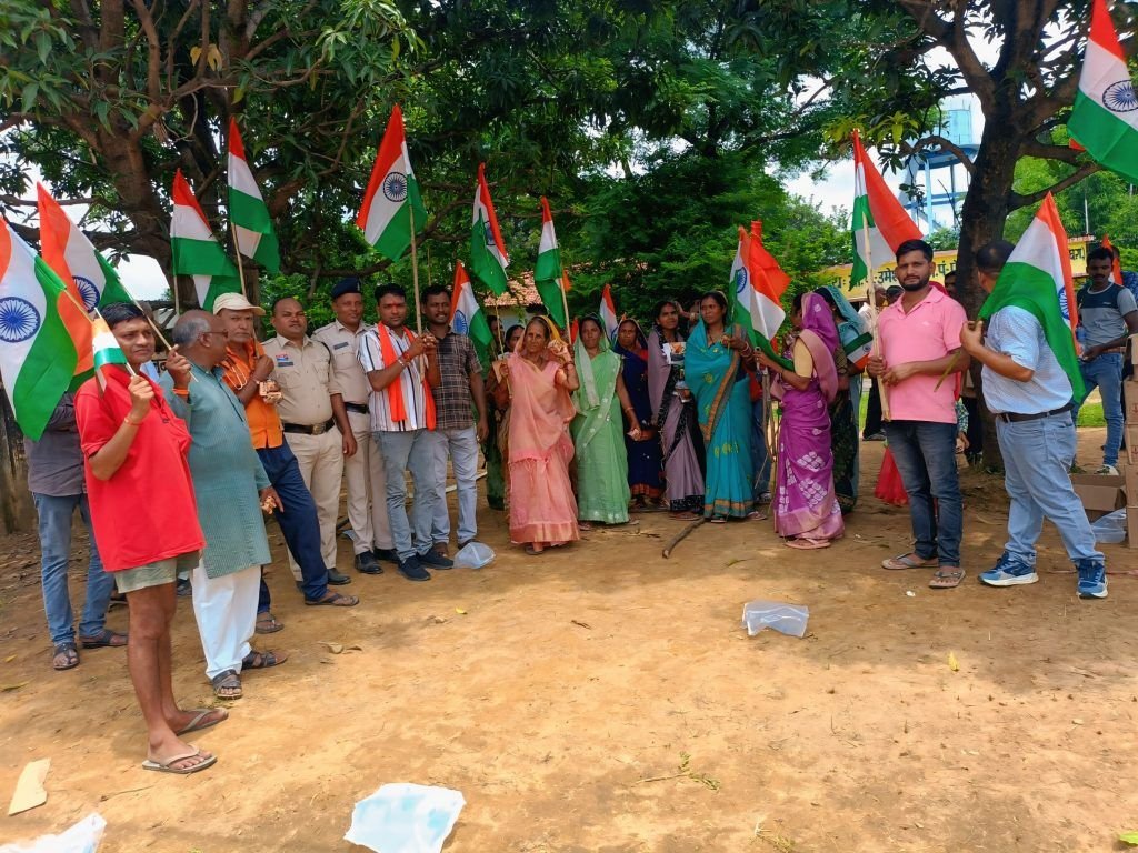 राष्ट्रीय आह्वान पर मोर तिरंगा मोर अभियान के तहत रामानुजनगर मंडल में भव्य तिरंगा यात्रा निकाली गई। जनपद सदस्य श्रीमती अमीन बाई के मुख्य अतिथि परमानन्द राजवाड़े और व्यवस्था प्रभारी सुभाष कुमार साहू के नेतृत्व में निकाली गई तिरंगा यात्रा में उमड़े जनसैलाब और मां भारती के जयघोष से गुंजायमान उमेश्वरपुर की सड़कें पूरी तरह जाम रही। राष्ट्र प्रथम की भावना से ओत-प्रोत होकर उत्साह उमंग और पूरे जोश खरोश के साथ तिरंगा यात्रा में महिला पूरूष युवा तथा बच्चों ने सहभागिता निभाई। तिरंगा यात्रा में ग्राम के सरपंच सावित्री राम सिंह राजपाल साहू, अमलेश्वर सिंह, दिलबोध दास,कृष्णा सिंह,ठाकुर सिंह, ग्रामीणजन सहित भाजपा पदाधिकारी कार्यकर्ताओं के साथ चंद्रपाल लकड़ा विजय त्रिपाठी,शिवकुमार, जनपद सीईओ संजय राय तहसीलदार मनहरण राठिया पुलिस चौकी के शिव सिंह सहित सभी विभागों के अधिकारी कर्मचारी विभिन्न सामाजिक धार्मिक संगठनों के पदाधिकारी कार्यकर्तागण तथा हजारों की संख्या में ग्रामीण जन उपस्थित थे।