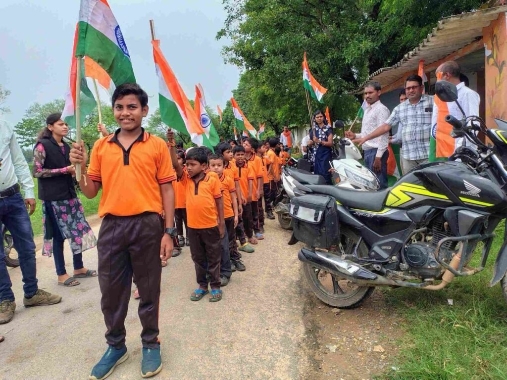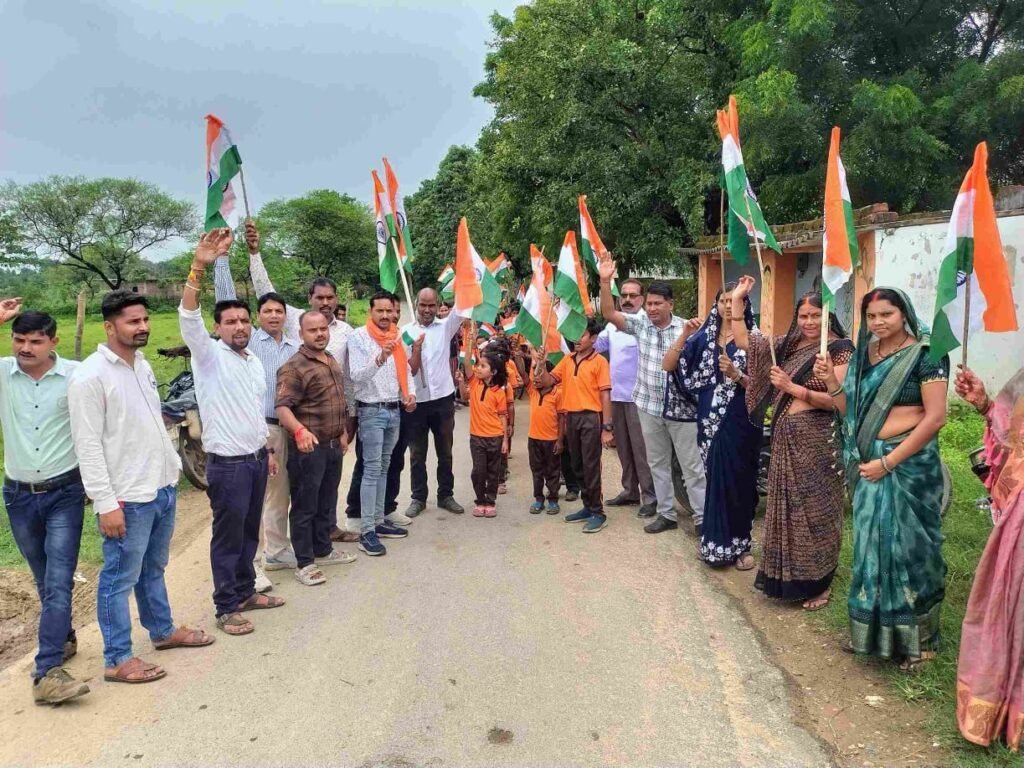 राष्ट्रीय आह्वान पर मोर तिरंगा मोर अभियान के तहत रामानुजनगर मंडल , देवनगर मंडल में भव्य तिरंगा यात्रा निकाली गई। भाजपा देवनगर मंडल महामंत्री आशा साहू ,भाजपा बूथ अध्यक्ष बूथ क्र.80 पम्पापुर राजीव कुमार साहू के नेतृत्व में निकाली गई तिरंगा यात्रा में उमड़े जनसैलाब,भारत माता की जय , वन्दे मातरम, हर घर तिरंगा ,घर घर तिरंगा , मोर तिरंगा मोर अभिमान ,नारो के साथ निकली तिरंगा यात्रा । राष्ट्र प्रथम की भावना से ओत-प्रोत होकर उत्साह उमंग और पूरे जोश खरोश के साथ तिरंगा यात्रा में महिला , पूरूष, युवा, तथा स्कूल के बच्चों व शिक्षको ने सहभागिता निभाई। तिरंगा यात्रा में ग्राम के चिंतामणि यादव,विनोद साहू ,भुनेश्वर साहू, विनय,राजाराम ,अनिल साहू,गंगा साहू,अरुण साहू, रामू सिंह, भुनेश्वर सिंह,हरकेश साहू,शिवकुमार एवं भाजपा कार्यकर्ता ग्रामीणजन सहित भाजपा पदाधिकारी भारी संख्या में ग्रामीण जन उपस्थित थे।