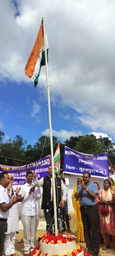 रामानुजनगर / शासकीय बालक उच्चत्तर माध्यमिक विद्यालय एवं सेजेस रामानुज नगर ने सामूहिक रूप से सुभाष चौक होते हुए बस स्टैंड तक गगनचुंबी नारों के साथ प्रभात फेरी निकाली प्रातः 9 बजे एसएमडीसी के अध्यक्ष विकास दुबे द्वारा ध्वजारोहण किया गया। स्वतंत्रता दिवस कार्यक्रम के मुख्य अतिथि एसएमडीसी अध्यक्ष विकास दुबे विशिष्ट अतिथि के रूप में भाजपा के मंडल अध्यक्ष पवन सिंह, सांसद प्रतिनिधि सुरेश मरकाम,ग्राम पंचायत रामानुज नगर के सरपंच राम सिंह टेकाम, रामानुज नगर ग्राम पंचायत के सभी पंच गण, भाजपा के कार्यालय प्रभारी प्रदीप झा, भाजपा मीडिया प्रभारी अनूप दुबे, युवा नेता संजीव गुप्ता, सेवानिवृत्त व्याख्याता पंडित नागेंद्र उपाध्याय, कार्यक्रम की अध्यक्षता कर रहे प्राचार्य पीसी सोनी, व्याख्याता सीमा दुबे, विकास नामदेव,गोपाल सिंह, नरेश गुप्ता,सुनील गुप्ता, अर्चना दुबे,मंजरी तिवारी, आशा बरवा,श्रुति साहू शिक्षक प्रकाश कुमार जोल्हे, बिहारी लाल साहू, वर्षा सिंह प्रयोगशाला सहायक विकास देवांगन श्याम सिंह मरावी सेजस रामानुजनगर के व्याख्याता राजीव मिश्रा ऋषिकेश साहू,आंचल साहू, बिना प्रजापति, पूजा गुप्ता, शिक्षक लोमेश सिन्हा, पुष्पेंद्र ठाकुर, योगेश साहू, इसरार हयात विवेक, सहायक शिक्षक प्रार्थना बाघे,अल्पना, जय गुप्ता, पीटीआई नवीन राठौर, हजार की संख्या में छात्र-छात्रा, राष्ट्रीय सेवा योजना के स्वयंसेवक एवं सैकड़ो की संख्या में ग्राम वासी उपस्थित रहे। छात्र-छात्राओं द्वारा देशभक्ति गीत नृत्य भाषण स्टंट डांस,क्षेत्रीय नृत्य जैसे रंगारंग कार्यक्रम प्रस्तुत किए गए। प्रदीप झा ने देश की एकताऔर अखंडता को बनाए रखने के लिए सबको आगे आने की सलाह दी। मंडल अध्यक्ष पवन सिंह ने बच्चों को देश का भविष्य बताया तथा सभी लोगों को स्वतंत्रता दिवस की हार्दिक शुभकामनाएं व बधाई दी। एसएमडीसी के अध्यक्ष विकास दुबे ने बच्चों को देश का एक अच्छा नागरिक बनने की सलाह देते हुए बच्चों के उज्जवल भविष्य की कामना की। विकास दुबे द्वारा सभी प्रतियोगियों को पुरस्कार प्रदान किया गया। विद्यालय के प्राचार्य पीसी सोनी द्वारा आभार प्रदर्शन किया गया। कार्यक्रम का सफल संचालन राष्ट्रीय सेवा योजना के कार्यक्रम अधिकारी दिलीप कुमार शर्मा एवं व्याख्याता निकिता केसरी के द्वारा किया गया। सभी बच्चों को मिष्ठान वितरण कर कार्यक्रम समाप्ति की घोषणा की गई।