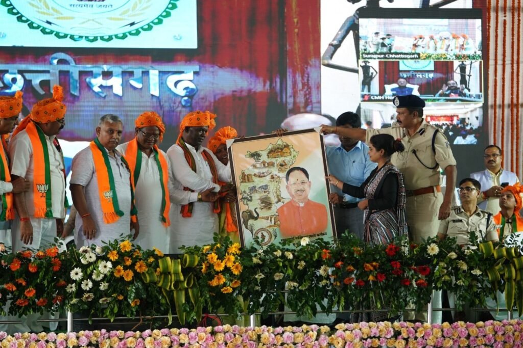 सरकार की उपलब्धियों का उल्लेख करते हुए श्री साय ने बताया कि विगत 20 महीनों में मोदी की गारंटी के तहत अनेक जनकल्याणकारी कदम उठाए गए हैं। इनमें धान की खरीदी 3100 रुपये प्रति क्विंटल की दर से, 70 लाख महिलाओं को महतारी वंदन योजना के तहत प्रतिमाह 1000 रुपये की सहायता, तेंदूपत्ता संग्राहकों को पुनः चरण पादुका वितरण, किसानों को धान बोनस, 5 लाख 62 हजार भूमिहीन कृषि मजदूरों को 10 हजार रुपये की आर्थिक मदद, श्रद्धालुओं के लिए रामलला दर्शन योजना, बुजुर्गों के लिए 19 तीर्थ स्थलों की यात्रा, तथा अटल डिजिटल सेवा केन्द्रों की स्थापना शामिल है। उन्होंने बताया कि आगामी छह माह में 5 हजार पंचायतों में ये केंद्र खोले जाएंगे।